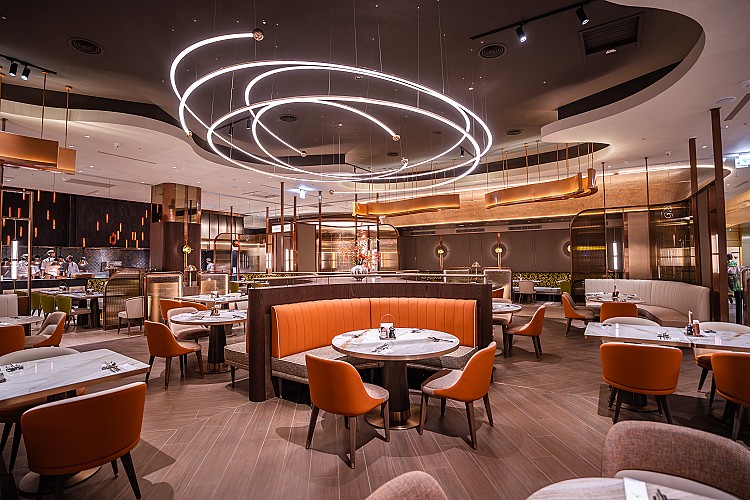 饗賓集團旗下蔬食Buffet品牌果然匯,在明曜店畫下句點後,選擇回到台北站前最核心的位置重新登場。新光三越13樓的新據點於12月23日開幕,占地260坪、312席,空間尺度與餐檯配置全面升級,企圖把蔬食從「選項」拉回日常主流。開幕當日邀請演員李沐攜手行政主廚莊委章演繹限定料理秀,其中「金桔剝皮椒香櫛瓜麵」以細刨櫛瓜取代澱粉主體,結合微辣剝皮椒與清亮金桔香氣,風味乾淨俐落。此次同步推出7道限定菜色,從豆乳暖鍋、奶油南瓜燴時蔬到椒麻酥排與甜柿乳酪捲,展現蔬食在口感、香氣與飽足感上的完整層次,也再次強化果然匯一貫的定位,吃得輕鬆,但一點也不無聊。