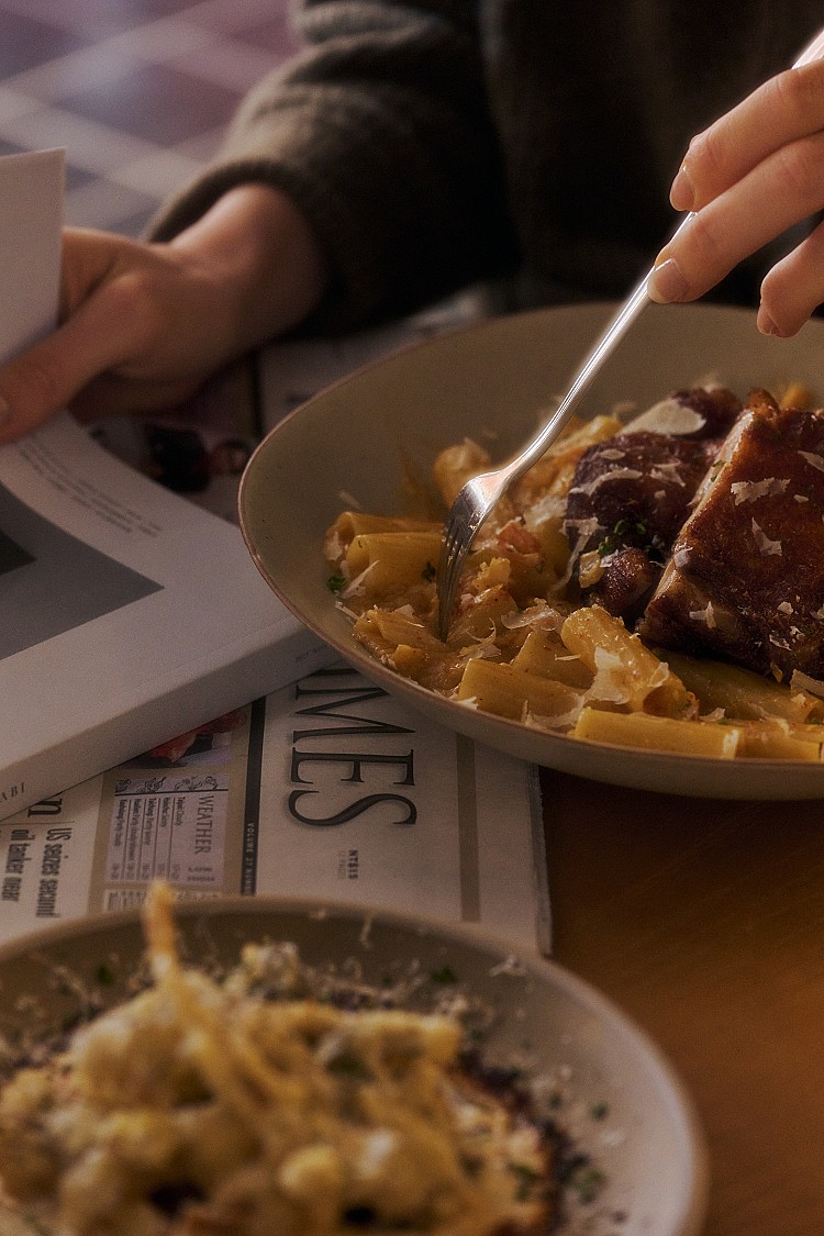 「所 Suo」尊鴻餐飲集團推出這個全新品牌,以現代義大利麵為核心。選址勤美、草悟道一帶,空間由艾洛設計操刀,以大地色系、木質與水泥交織出低社交壓力的溫暖秩序,讓人自然放鬆。料理則把台式靈魂拆解重組,花雕酒、烏魚子、牛三寶等熟悉味道,被精準收進義式結構中,呈現既熟悉又細膩的平衡感,不追求喧鬧,而是用溫度、節奏與一碗好麵,回應當代生活對歸屬與安放的渴望。