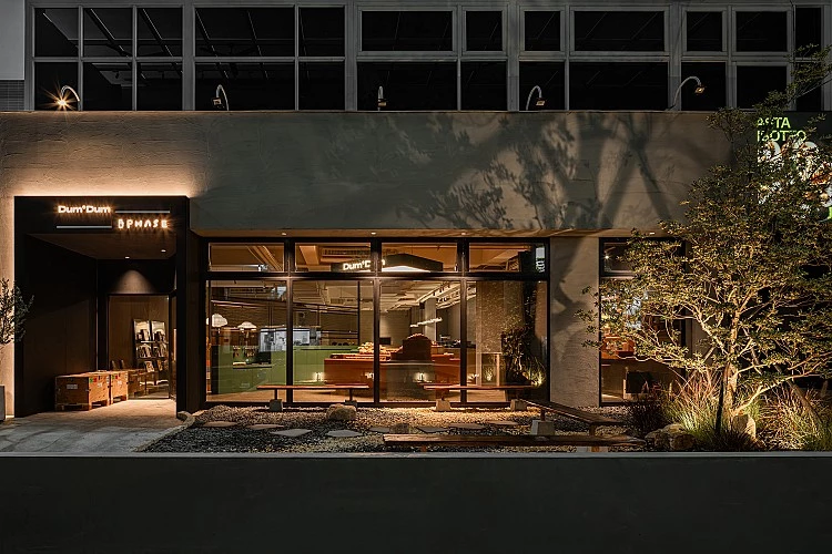 在水湳經貿園區成形中的城市輪廓裡,尊鴻餐飲集團全新烘焙品牌DUM DUM攜手台中精品咖啡Phase Coffee Roasters,於北屯打造複合式門市。空間由不醒人室內裝修操刀,以方格地磚、長型吧檯與森林綠絨面座椅構築理性與鬆弛並存的氛圍,大面積玻璃引入綠意,形成內外交融的城市綠洲。餐飲表現上,DUM DUM主打自養酵母慢發酵歐包,融入地瓜、桑椹與多穀物等在地食材;Phase Coffee則延續其風味結構的精準掌握,推出特調與經典咖啡並行。這裡不只是麵包與咖啡的結合,而是一種關於節奏與日常的生活提案。