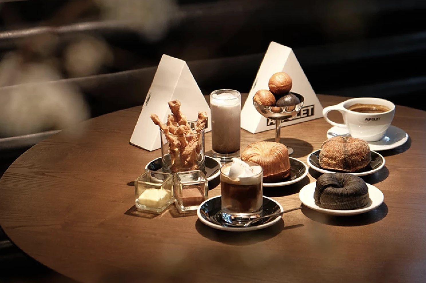 在首爾漢南洞竄紅的Aufglet,連邊佑錫都搶朝聖,本週正式插旗台北東區。以標誌性黑色美學打造空間,從桌面、燈光到制服都圍繞同一套視覺語言,營造沉浸式場景感。最聰明之處,在於把咖啡館升級為文化平台,時尚、音樂與次文化自然交織,讓喝咖啡成為一種態度展示。品牌被稱為「可朗芙始祖」,將可頌壓製成鬆餅結構掀起風潮。此次登台帶來可朗芙、可頌球、可頌貝果與可頌吉拿棒等代表作,外層酥脆、內裡層次分明,辨識度極高。台北店更推出限定早午餐,像楓糖炸雞可朗芙、韓式泡菜炒飯等品項,把甜點技法延伸至鹹食之中。飲品首推鮮奶油咖啡,香草鮮奶油與濃縮咖啡比例精準,口感乾淨俐落;黑可可焙茶椰奶則走成熟苦甜路線。