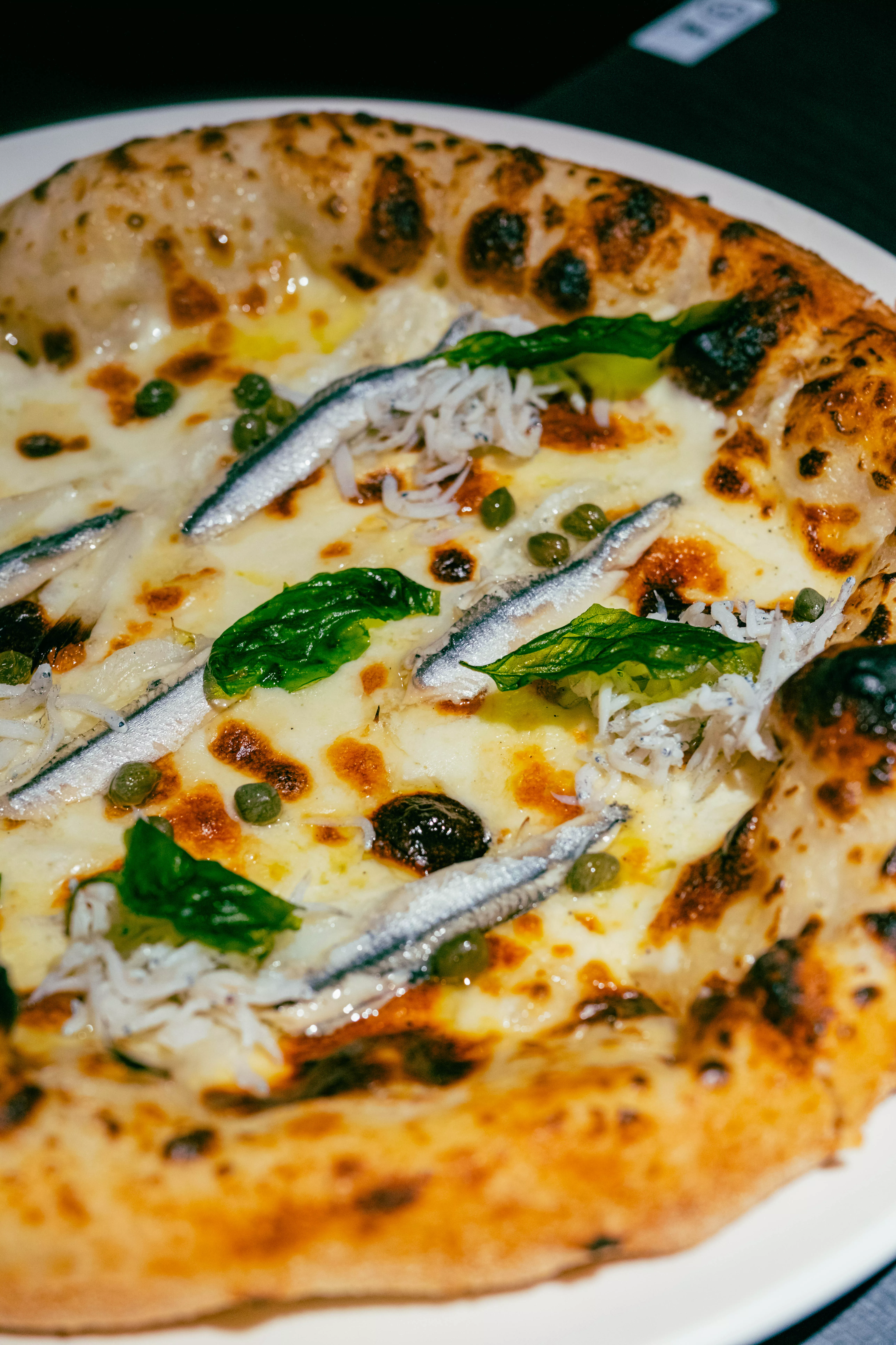 若問起創辦人:「你最推薦的會是哪一款?」他私心推薦給我們「魚兒魚兒披薩,絕對是不能錯過的一款。」以海味作為主角,這款披薩在風味上展現出相當細膩的平衡感。經過醋漬處理的白鯷魚,先帶出一抹清爽而俐落的酸香,讓整體味道不會落入厚重鹹感,反而多了一層開胃的明亮節奏;接著搭配台灣人熟悉的銀魚與吻仔魚,將海洋鮮味層層堆疊,入口時既有細緻鹹鮮,也保有柔和的口感層次。點綴其中的酸豆則進一步拉出酸度與鹹香的對比,而羅勒的草本氣息則在尾韻輕輕解尾。看似衝突的元素,在餅皮與配料之間形成一種微妙卻和諧的共存,越吃越讓人著迷。