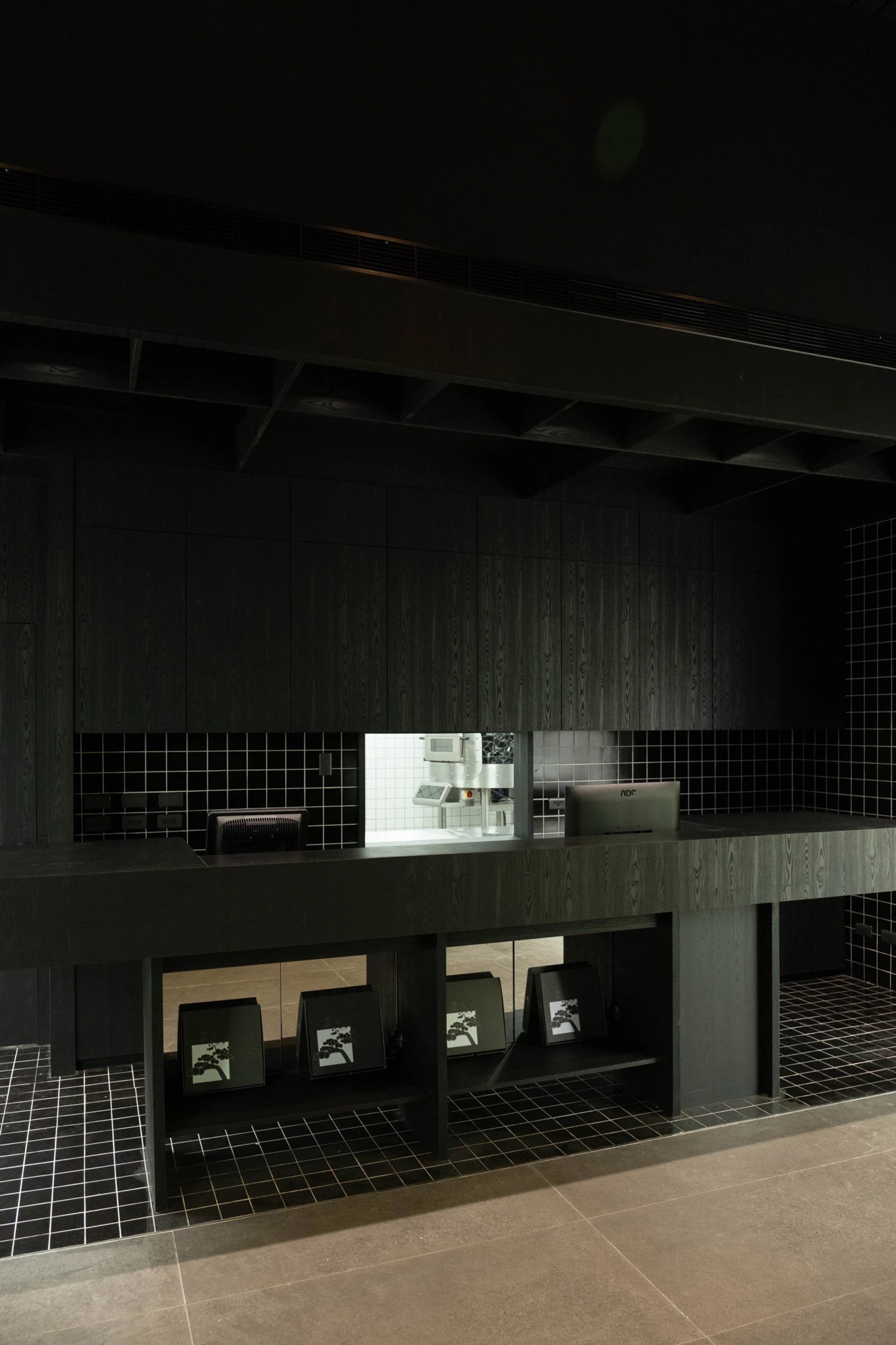 比起一般餐廳從室內設計開始思考,美菊披薩這次更像是在打造一件建築作品。從結構、立面到外觀比例,全都從零開始重新構築,讓空間本身成為品牌敘事的一部分。外觀以單一材質鋪陳,幾乎去除了多餘裝飾,只留下最純粹的線條與量體,帶著極簡卻強烈的存在感。尤其那扇異常小尺度的入口,更像是一道被刻意壓縮的縫隙,讓人必須微微收斂身體,才得以進入其中。從屏東日常街景,一步踏入另一個被重新定義的世界。它讓「進店」不只是動作,而是一場儀式,這種對比例與結構的敏感,也讓整間店有種近似藝廊或建築展演空間的氣質,低調但卻有態度。