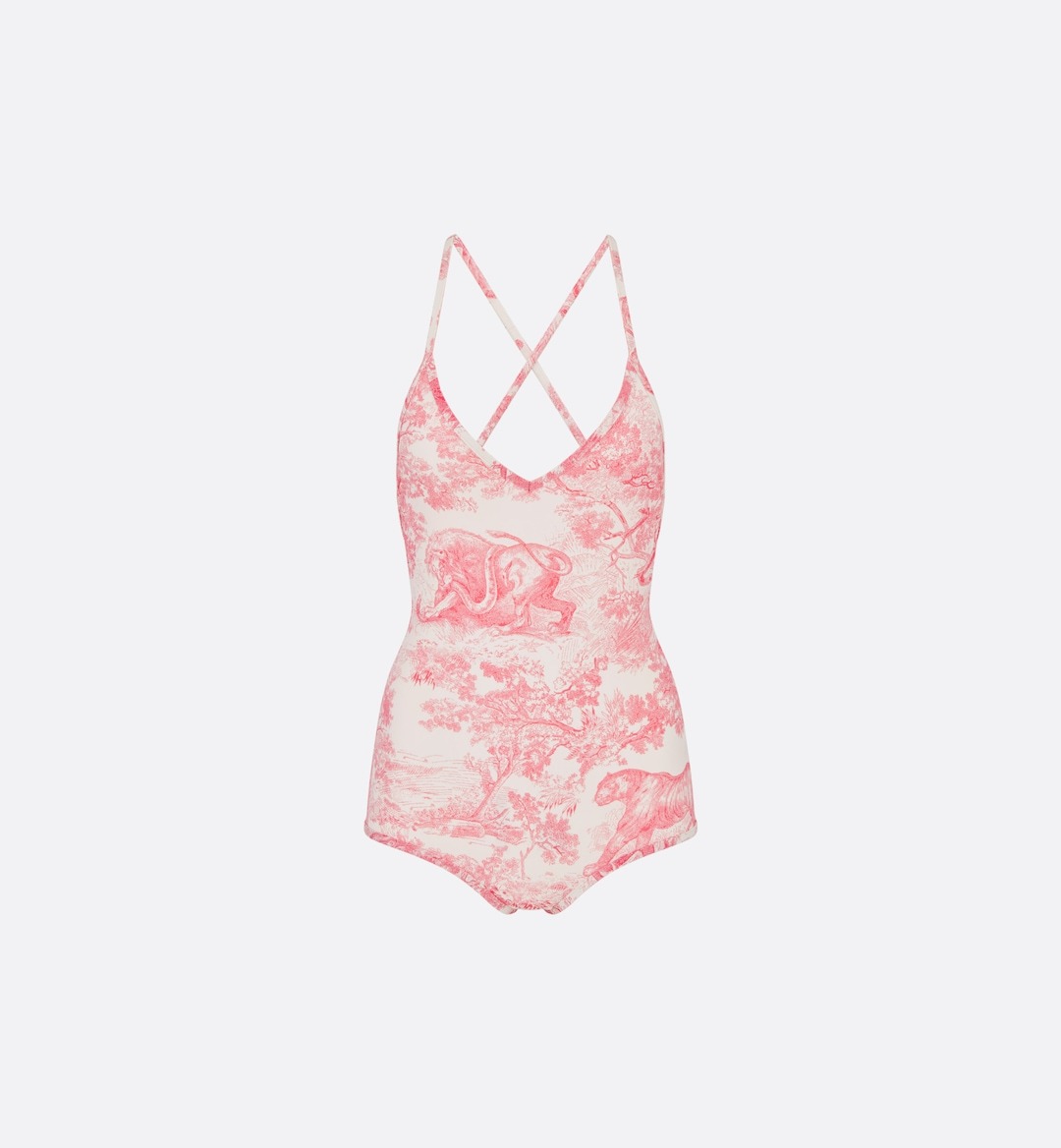 Dior向來很懂得法式女人的迷人風範,例如這件Dioriviera系列的連身泳衣,運用Toile de Jouy Sauvage 印花圖騰和夢幻糖果粉,胸前V領剪裁則展現隨性自然的性感魅力,詮釋出優雅又甜美的夏日活力風采!(價格:NT$32,000)