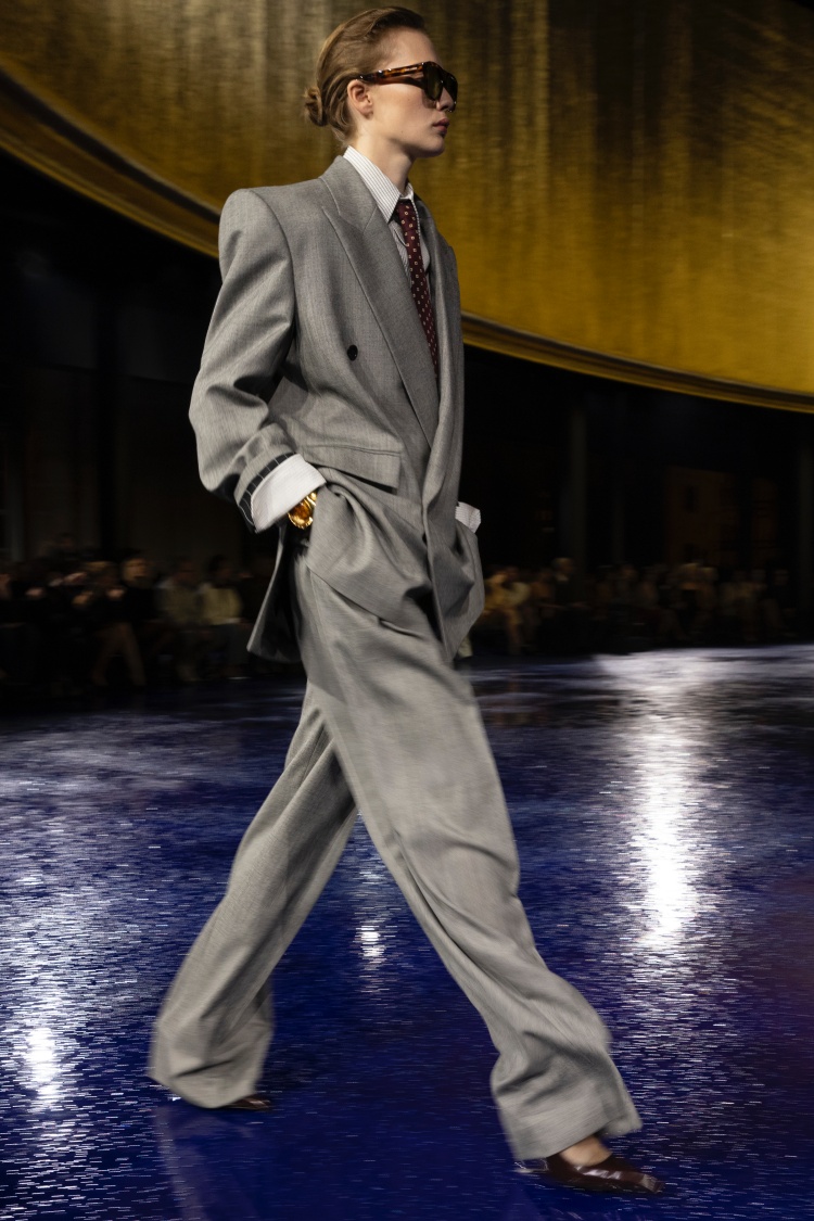 提到近期將西裝外套發揮到最徹底的品牌,Saint Laurent 絕對可以名列前矛,創意總監 Anthony Vaccarello 以品牌創辦人聖羅蘭先生的私著為靈感,重新演繹男性版型的西裝輪廓,藉由大墊肩與落地褲款,在搭配高跟鞋,讓女性在剛毅中保留性感,同時也為品牌繼吸菸裝後再創經典。