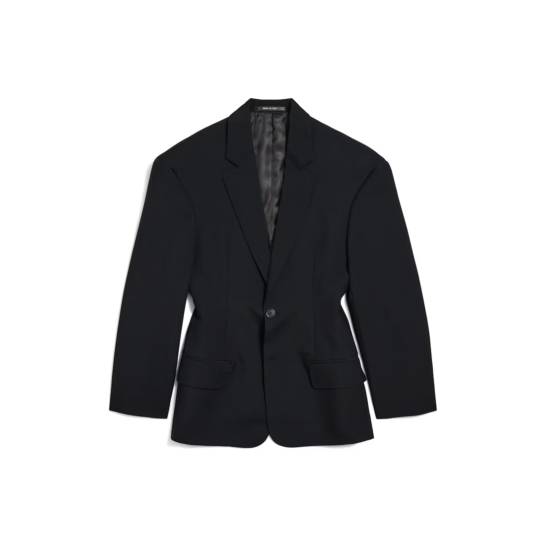 這款 Balenciaga 這件單釦西裝外套以利落剪裁勾勒身形,低調中見細節。整體設計強調簡約俐落感,細節上收腰與 Oversize 的版型展現實驗風格,無論搭配休閒牛仔褲裝或洋裝,都能展現知性與個性兼具的氛圍。(價格店洽)