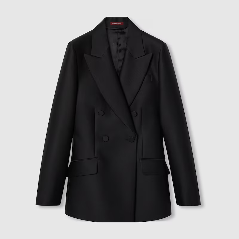 Gucci 以極簡的設計風格為軸心,這款黑色雙排扣長版外套採流線剪裁,適度修身卻保有寬鬆空間。細節低調講究,是極簡風格愛好者的夢幻西裝選擇,無論搭配寬褲或長裙都極具氣質。