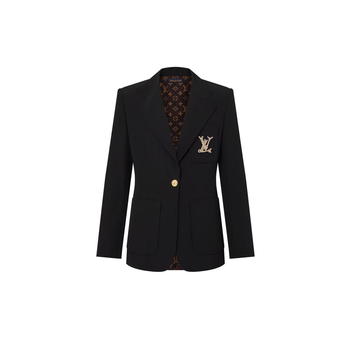 Louis Vuitton 將經典與休閒融合,打造這款具有 LV 金屬徽章與單釦設計的黑色西裝外套。內裏採用 Monogram 經典圖樣布料,低調展現品牌奢華。適合高端職場、時尚商務又或是半休閒等場合。(商品售價:NTD130,000)