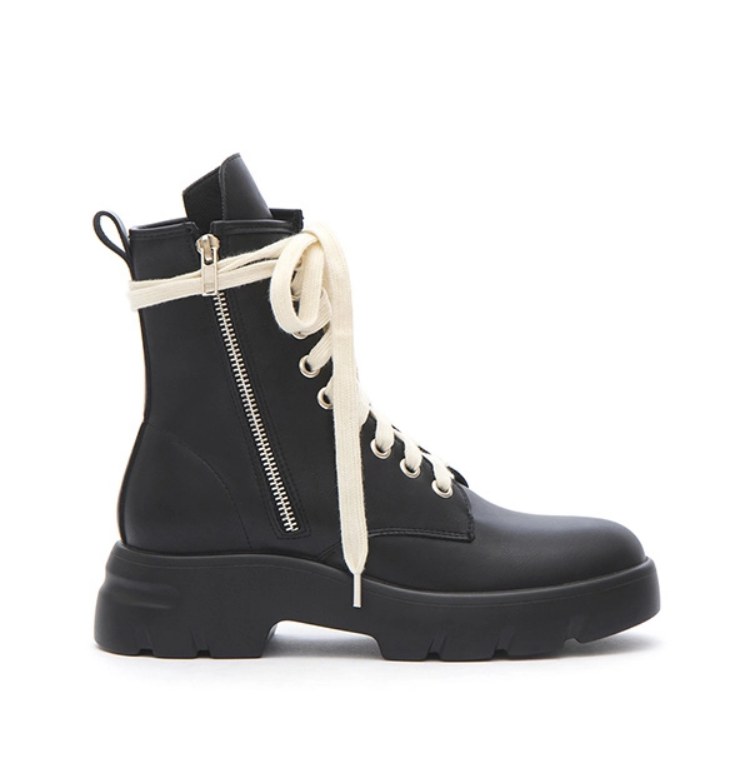 來自D+AF的這款厚底軍靴,以黑白對比為亮點,注入叛逆又俏皮的街頭氣息。粗繩鞋帶與側拉鍊設計兼具造型與實用性,厚底輪廓則帶來修長比例與穩定步伐,是日常穿搭中能提升氣場的一雙百搭戰靴。(商品價格 NTD 999)