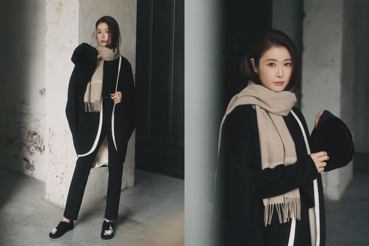林心如這套造型以黑色長版開襟外套打造沉穩基調,版型落肩、線條寬鬆,讓整體視覺乾淨俐落,卻保留呼吸感。在冬日穿搭裡,全黑容易顯得平淡,但透過配件立刻翻盤,搭配Loro Piana Twelve淺駝色圍巾盤繞頸間,不只補上溫度,也把臉部輪廓襯得更加柔和乾淨,整體風格低調但帶有故事感,必須學起來。