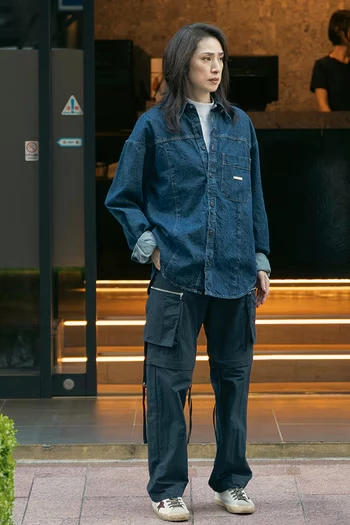 搭法1:單寧襯衫+工裝褲,越中性越逆齡