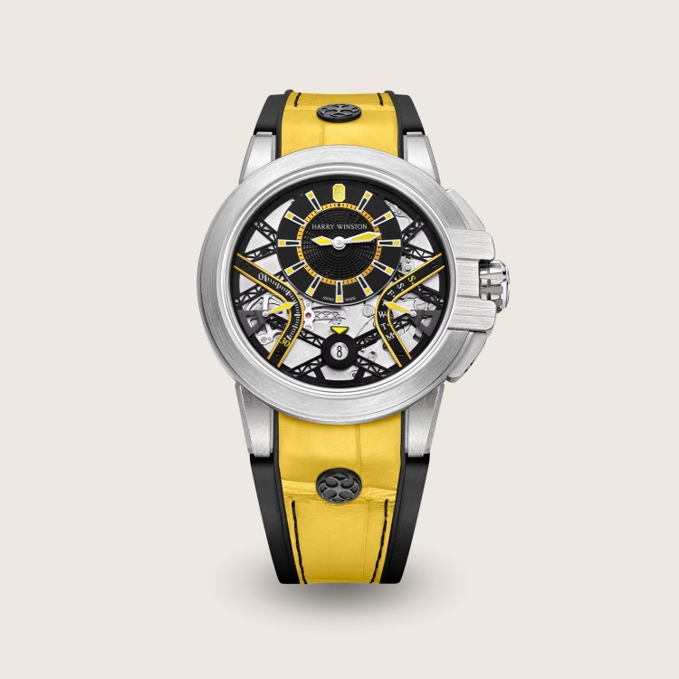 若要用一座城市的建築講述一只錶的靈魂,那麼 Harry Winston 的 Ocean Zalium Variation Yellow 腕錶,便是在紐約曼哈頓大橋下起舞的機械結晶。限量100枚的稀有性,加上採用高科技鋯合金(Zalium)打造的錶殼,使其成為低調奢華與前衛材質的代表作。錶盤鏤空設計展現結構之美,黃色細節如日光灑落鋼筋,與黑色鏤空結構產生戲劇性反差。逆跳功能及複雜機芯,訴說品牌對精密的不妥協,黃色鱷魚皮錶帶與黑色橡膠的異材質拼接,更是為其注入無限活力。中性設計下藏著熱血靈魂,男女都能戴出自己的態度。(價格店洽)
