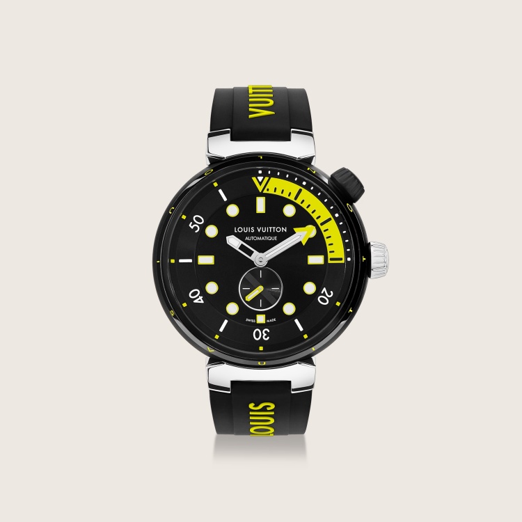 如果潮流會潛水,那麼 Louis Vuitton 的 Tambour Street Diver 就是它的專屬裝備。這款潛水錶不只抗壓、還耐看。以黑色 PVD 塗層鋼材搭配強烈的螢光黃點綴,視覺效果如同城市裡的霓虹燈,令人目不轉睛。功能上,它擁有潛水錶該有的一切:防水深度100米、夜光時標、旋轉錶圈……但風格上,它是 LV 對街頭風格的再詮釋。特別的雙錶冠設計與專利系統的可換式橡膠錶帶,更賦予使用者自定義風格的空間。這不只是計時工具,更是一件能隨時切換身份的時尚武器,穿梭於潮流與探險之間。(價格 NTD 237,500)