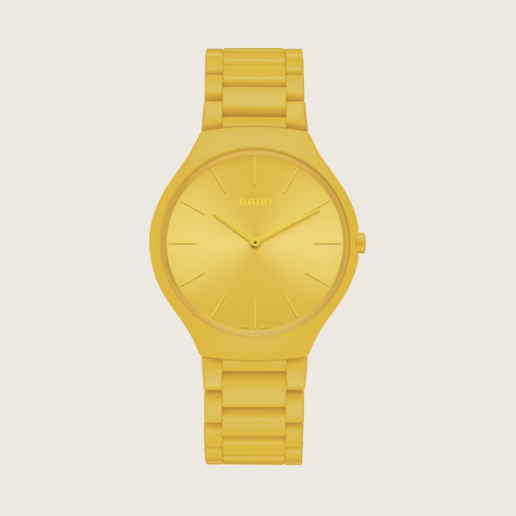 Rado 這款 True Thinline Les Couleurs™ 系列腕錶,向已故傳奇建築師勒柯比意(Le Corbusier)致敬,尤其這款「陽光黃」(Sunshine Yellow)版本,更是色彩與工藝的完美結晶。極簡外型,就像建築物上最恰如其分的一筆點綴,毫不喧賓奪主卻無法忽視。採用高科技陶瓷與鈦金屬製成,輕盈、抗刮、佩戴舒適,適合日常與正式場合無縫切換。大錶徑設計與石英機芯相得益彰,使時間顯示更加明確。那抹黃,是來自《建築色彩學》的唯一推薦色,就像陽光灑落在清水混凝土牆上,照亮整個空間——不分性別,人人皆宜。(價格 NTD 68,400)