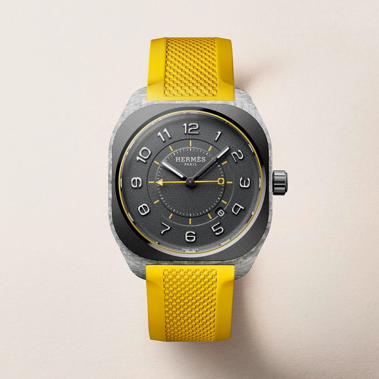 來自奢侈品牌 Hermès 的這款 H08 腕錶,彷彿是將法式設計感與運動機能揉合進一杯調酒裡,搖出令人驚艷的中性韻味。搭載品牌自製 H1837 機芯,灰黑色粒面錶盤映襯著活力黃色橡膠錶帶,如同深夜裡的一束探照光,冷靜中藏著熱情。這款腕錶最大的趣味細節,是數字「8」以品牌經典船錨鍊圖案詮釋,既俏皮又深具品牌識別性。以鍍鋁與板岩粉末打造的複合材質錶殼,加上磨砂陶瓷與鏡面交錯的雙重質感,讓錶體本身成為設計語言的風格延伸。運動感十足、極具辨識度,不論男女佩戴都自帶氣場。(價格 NTD 270,000)