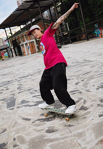 我朋友的自創品牌Style。品牌希望大家能找尋自己的風格,認真投入在自己喜歡的事物上。這和西門町發生的一切很像,不論是滑板、跳舞、還是刺青,大家都很熱衷於自己在做的事。