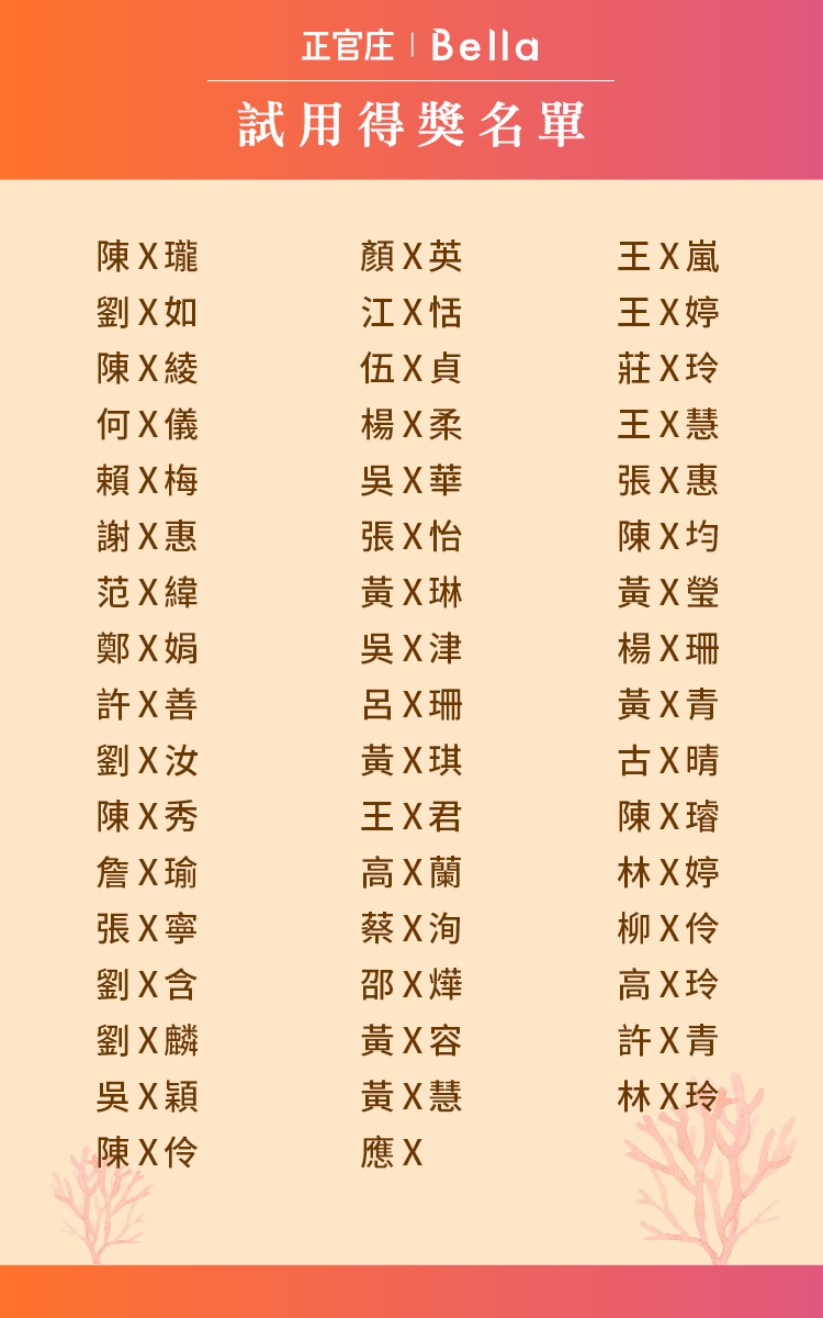 >試用得獎名單將於10月底公布於Bella儂儂官網得獎公告。