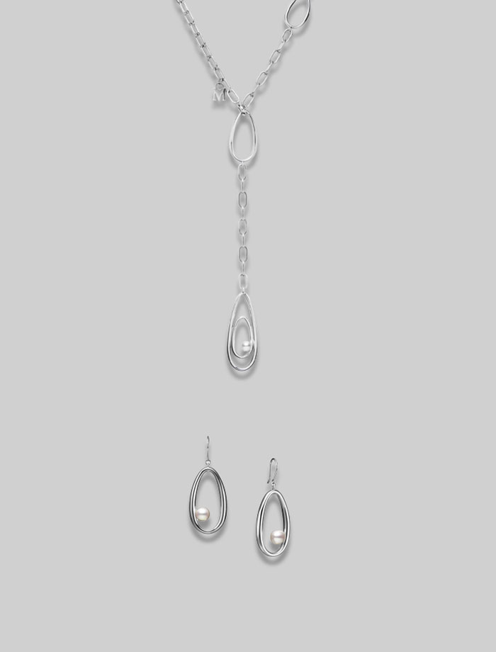 單顆的珍珠Y字鏈、成對的珍珠耳飾,